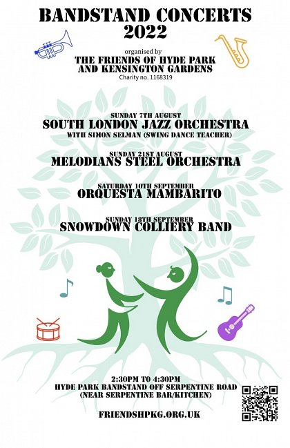 To reserve your place by email, click here, or by post to Tina Raymond, ℅ Friends HPKG, Old Police House, Hyde Park, W2 2UH